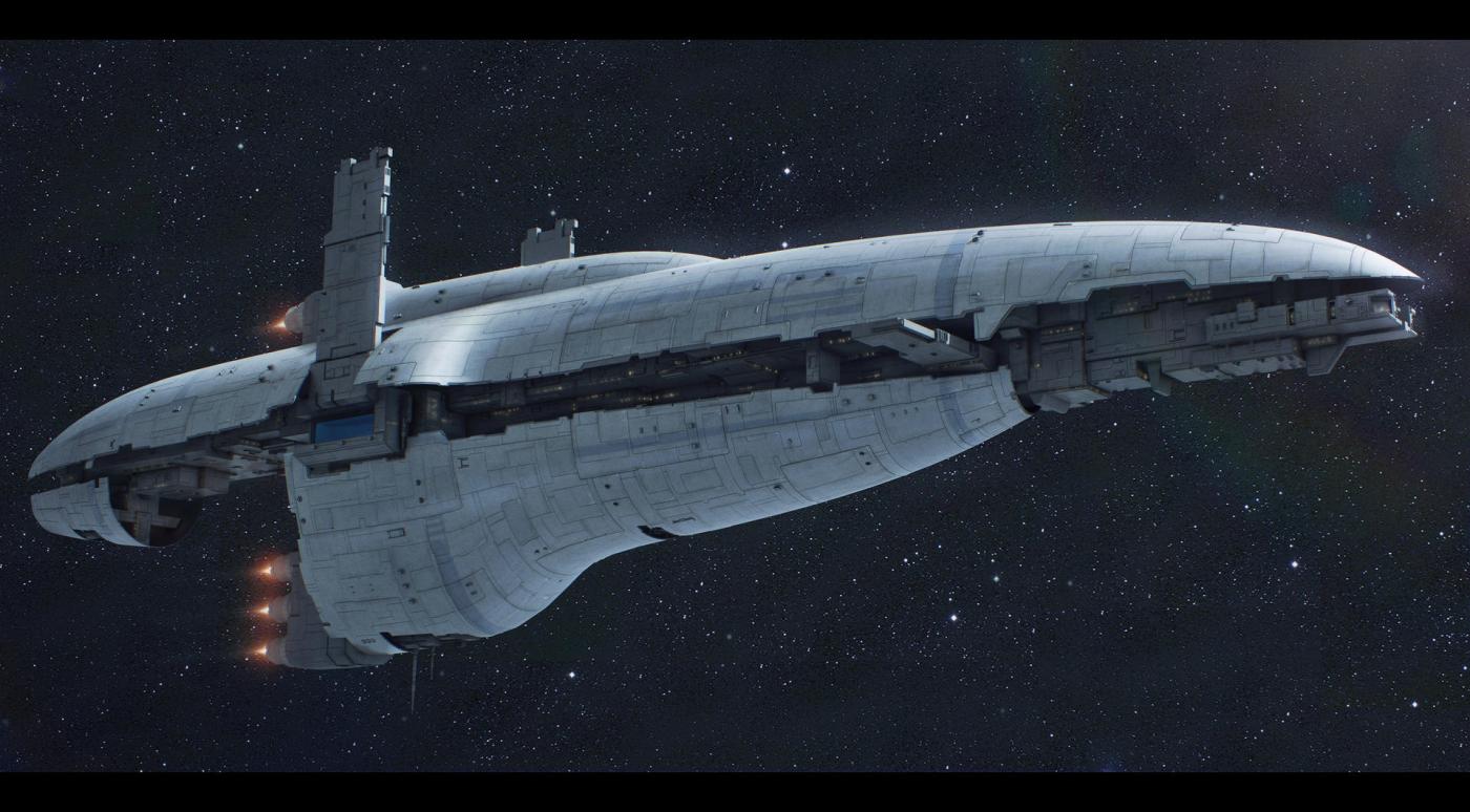 Venka activa l’enclenchement du décollage. Un chariot de propulsion, que les pilotes surnommaient « la locomotive », poussa le vaisseau sur les rails en direction de la première porte. Elle s’ouvrit doucement, laissant passer la flottille, et se referma derrière eux. La locomotive ralentit puis s’arrêta. A cent cinquante mètres se tenait une deuxième porte qui donnait sur l’espace.